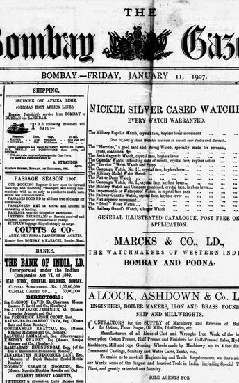 The Bombay Gazette, 11 January 1907