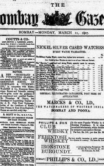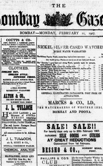 The Bombay Gazette, 11 March 1907