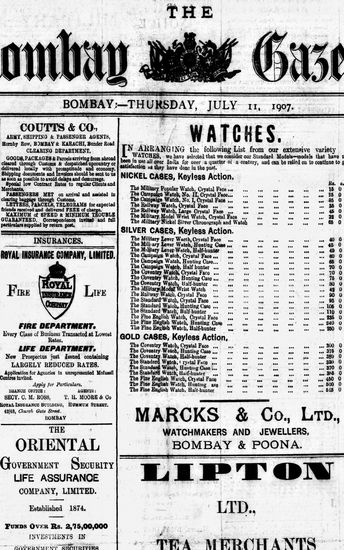 The Bombay Gazette, 11 July 1907