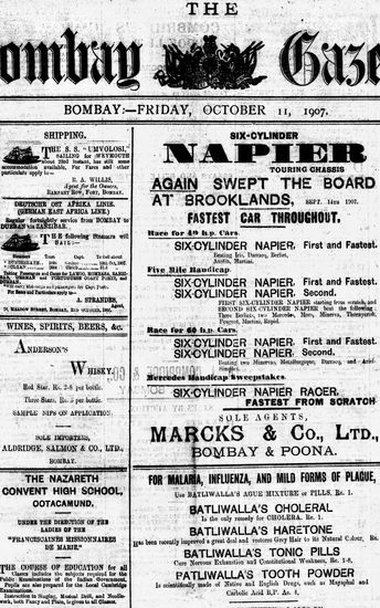 The Bombay Gazette, 11 October 1907
