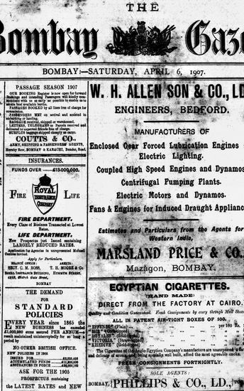 The Bombay Gazette, 6 April 1907