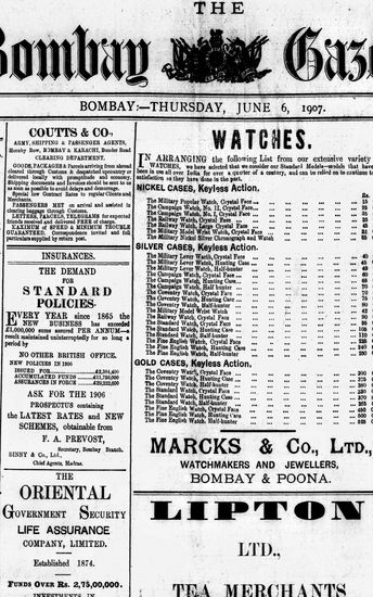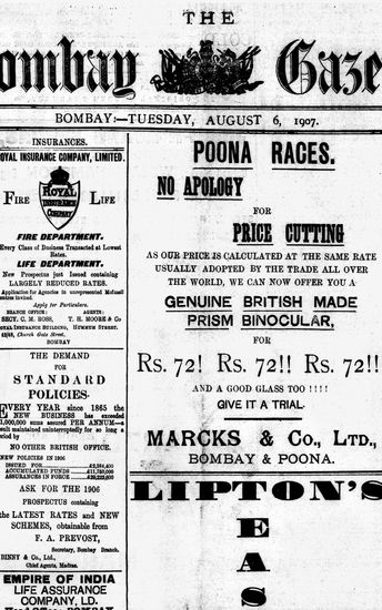 The Bombay Gazette, 6 August 1907