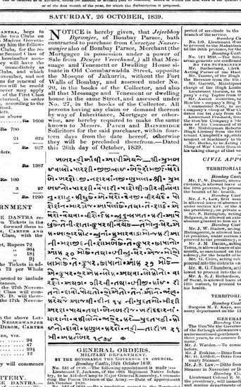 Bombay Courier, 26 October 1839