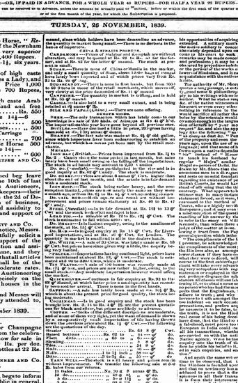 Bombay Courier, 26 November 1839