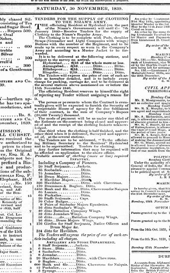 Bombay Courier, 30 November 1839