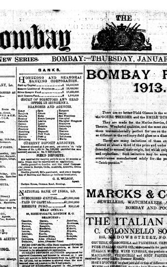 The Bombay Gazette, 9 January 1913