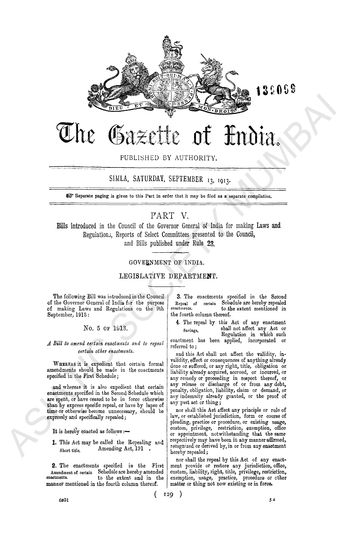 The Gazette of India, Part V, September 13, 1913.