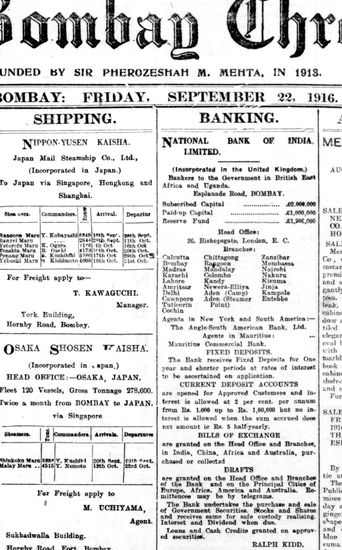 The Bombay Chronicle, 22 September 1916