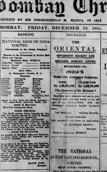 The Bombay Chronicle, 22 December 1916