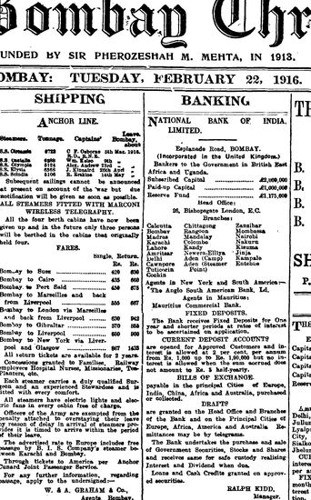 The Bombay Chronicle, 22 February 1916