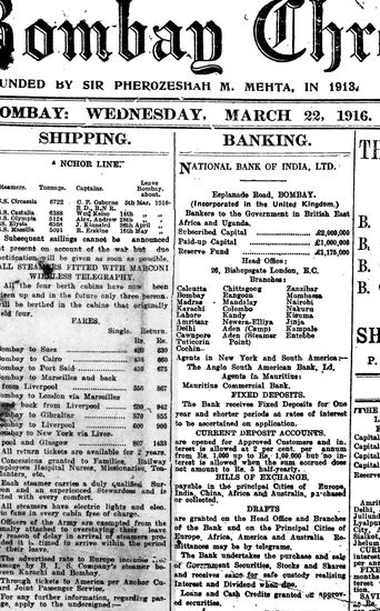 The Bombay Chronicle, 22 March 1916