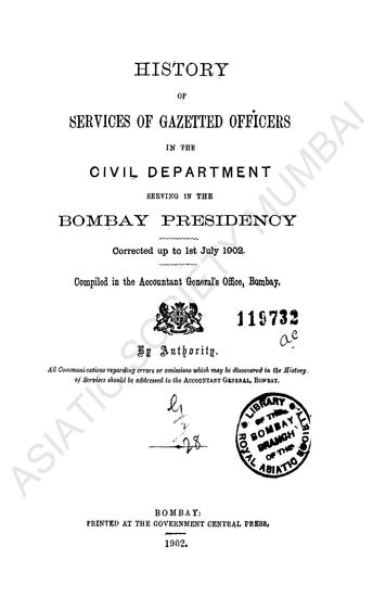 Bombay quarterly civil list corrected to the 1st July 1 ...