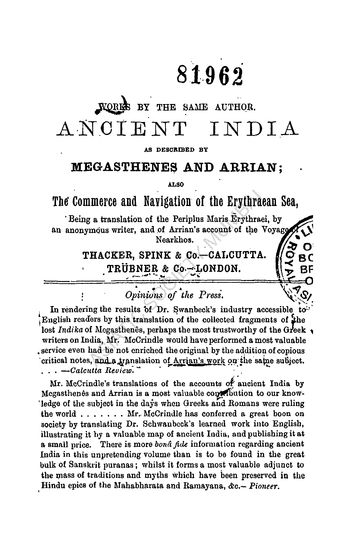 | Author | : | McCrindle, J. W. |