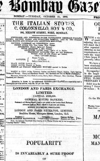 The Bombay Gazette, 21 October 1902
