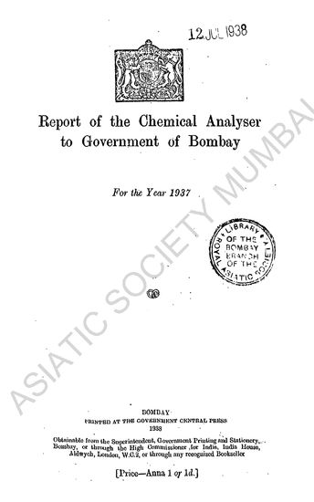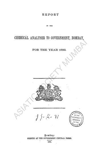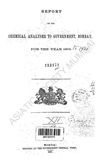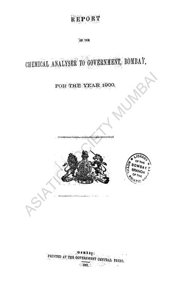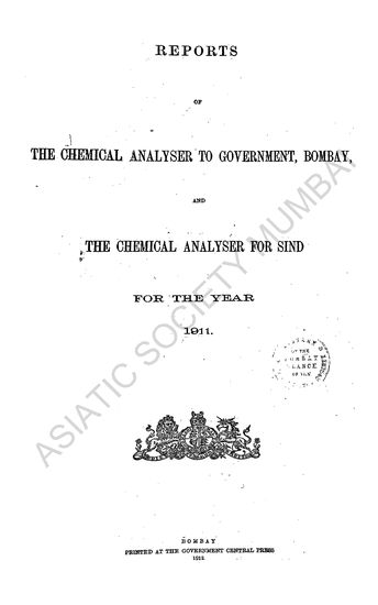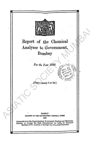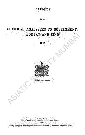 Reports of the Chemical Analysers to Government, Bombay, for the Year 1922