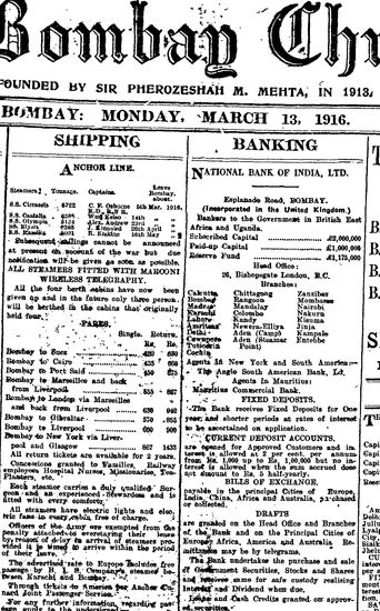 The Bombay Chronicle, 13 March 1916