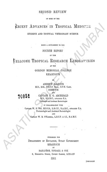 Author : Haffkine, W.M., Bannerman, W.B. and Liston, W. Gelen
