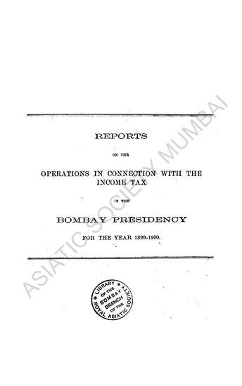 Report on the Operations in Connection with the Income Tax in the Bombay Presidency for the Year 1898-1899