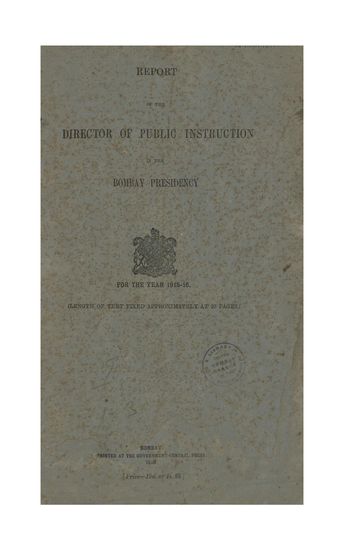 Report of the Director of Public Instruction in the Bombay Presidency for the Year 1875 -76