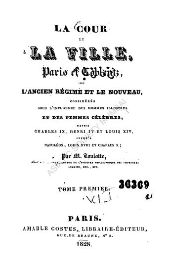 La Cour Et La Ville, Paris Et Coblentz: Ou L'ancien Regime Et Le Nouveau Consideres Sous L'influence Des Hommes Illustres Et Des Femmes Celebres Depuis Charles Ix, Henri Iv Et Louis XIV