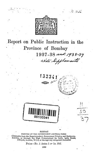 Land Revenue Administration Report of the Province of Bombay, 1937-38
