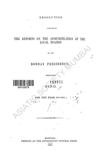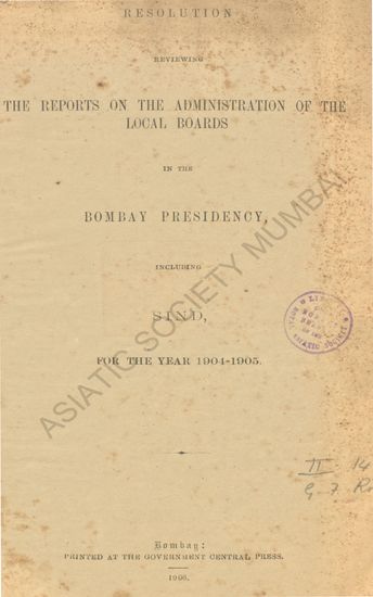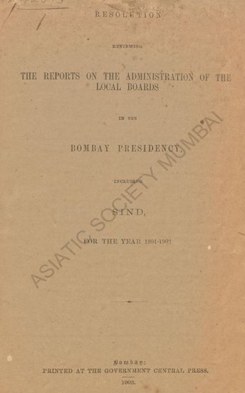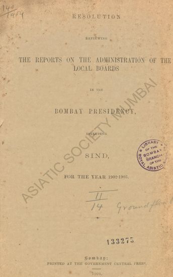 Resolution reviewing the report on the Adminstration of the Local Boards, including SIND for the year 1903-1904