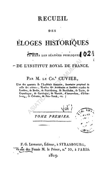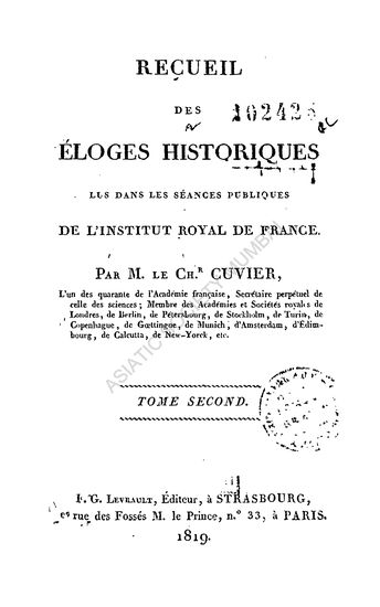 | Author | : | Cuvier Le Baron |