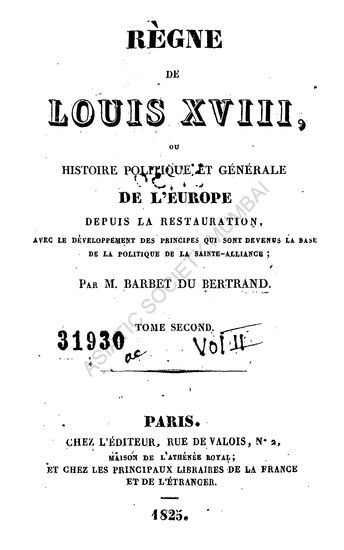 Tableau De L'Histoire Generale De L'Europe Depuis 1814 Jusquen 1830 In 3 Vols.(Vol.II)