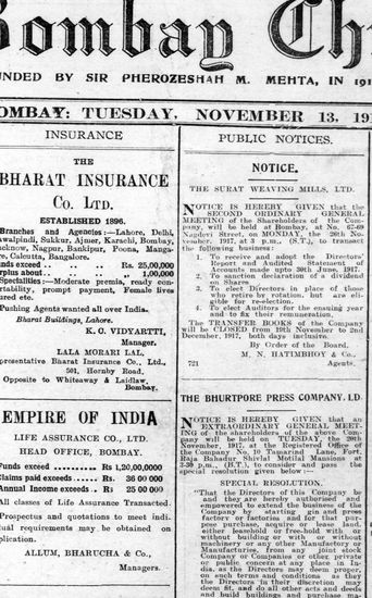 The Bombay Chronicle, 13 November 1917