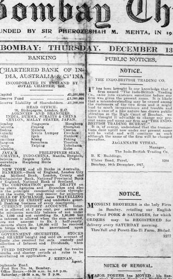 The Bombay Chronicle, 13 December 1917