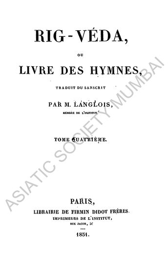 Rigveda: Ou Livre Des Hymnes: Tr. by M. Langlois in 4 V ...