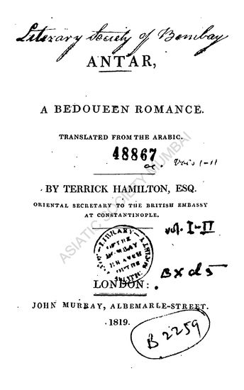 Antar: a Bedoueen Romance, in 4 Vols., Vol. 1-2