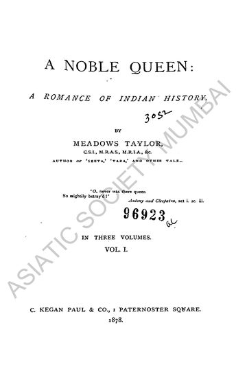 A Noble Queen: A Romance of Indian History, in Three Vo ...