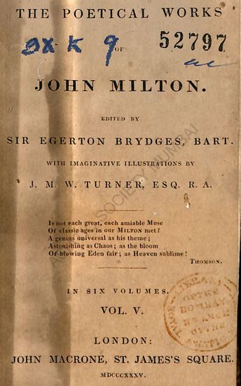 | Author | : | Milton, John Brydges, Egerton (Ed) Turner, J. M. W. |