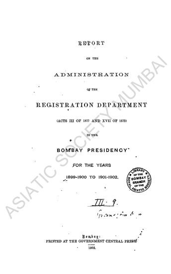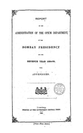 Report on the Administration of the Opium Department of the Bombay Presidency for the Revenue Year 1901-1902