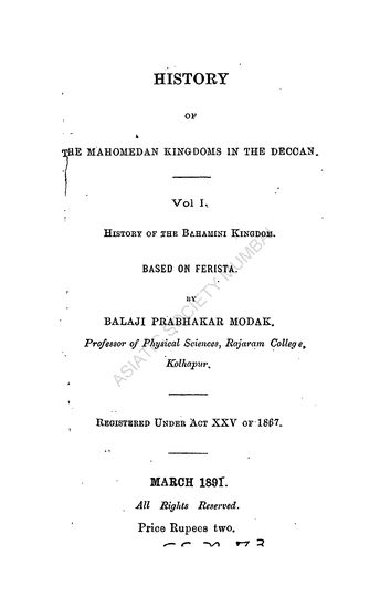 Dakshnentil Musalmani Rajyancha Itihas, part 1: Bahaman ...
