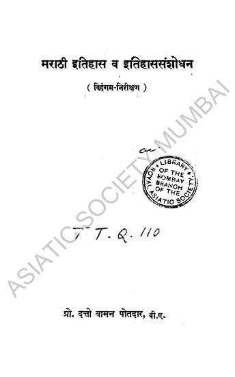 Marathi Itihas va Itihassanshodhan (Vihagham-Nirikshan)