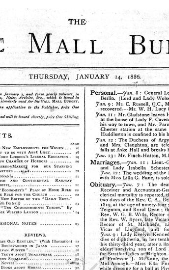The Pall Mall Budget, 14 January 1886