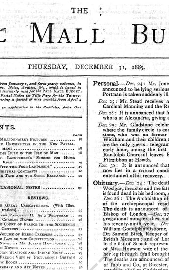 The Pall Mall Budget, 31 December 1885