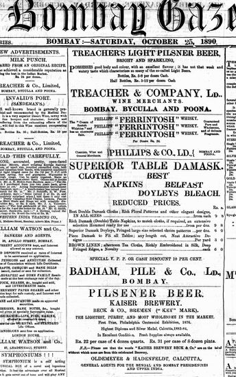 The Bombay Gazette, 25 October 1890