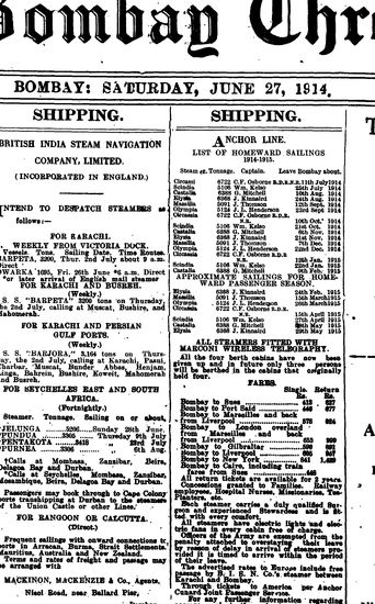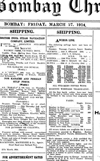 The Bombay Gazette, 27 February 1914