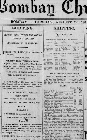 The Bombay Chronicle, 27 August 1914