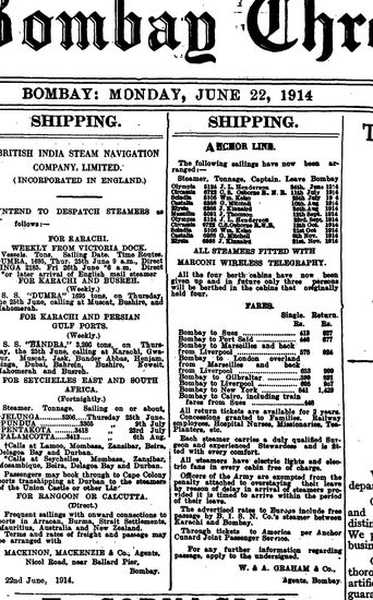 The Bombay Chronicle, 22 June 1914