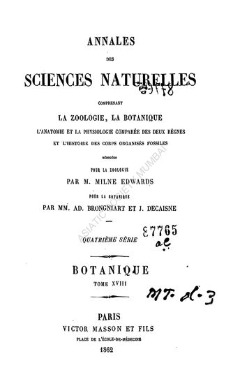 | Author | : | Edwards, M. Milne Brongniart, Adolphe Decaisne, J. |