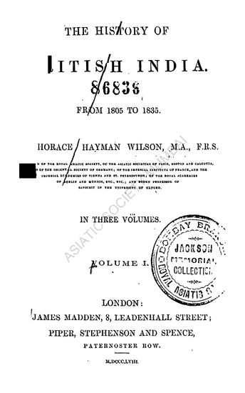 History of British India, in Six Volumes, 2nd ed., Vol. ...
