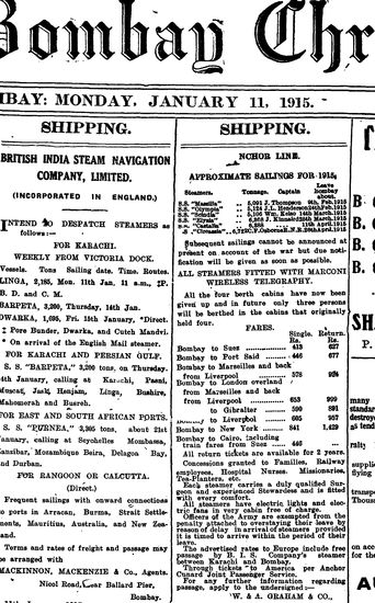The Bombay Chronicle, 11 January 1915
