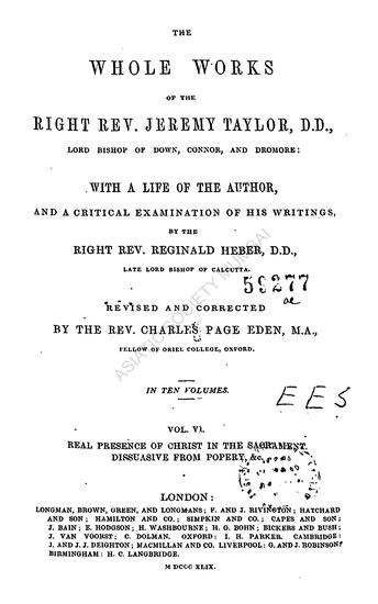 | Author | : | Taylor, Jeremy Heber, Reginald Eden, Charles Page (Rev. & Corr.) |