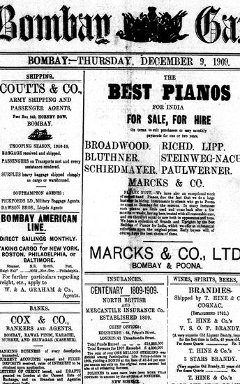 The Bombay Gazette, 9 December 1909