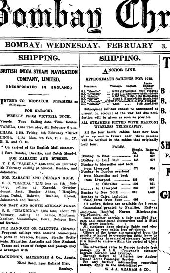 The Bombay Chronicle, 3 February 1915