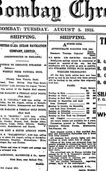 The Bombay Chronicle, 3 August 1915